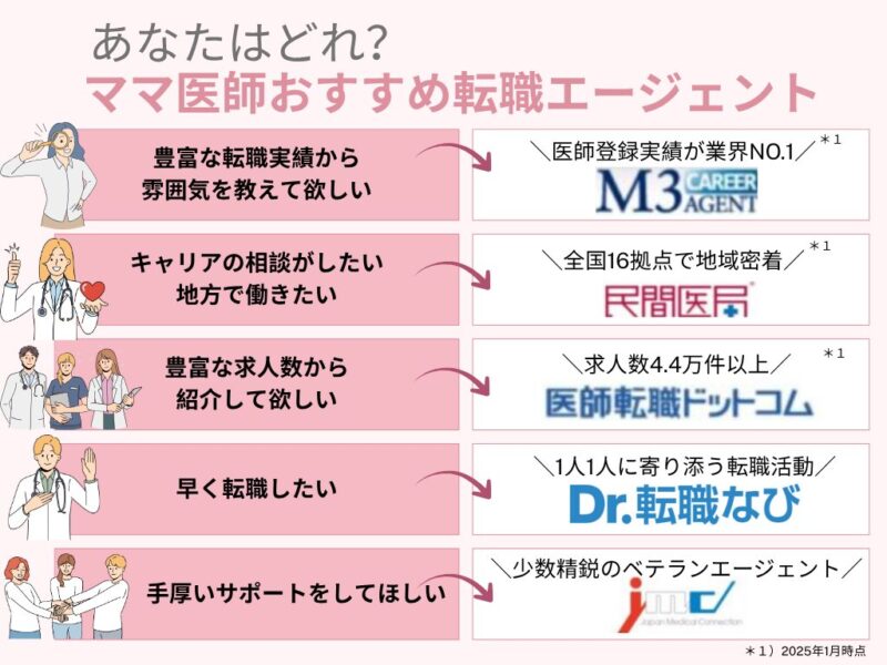 ママ医師におすすめの医師転職エージェント5選【2025年最新版】