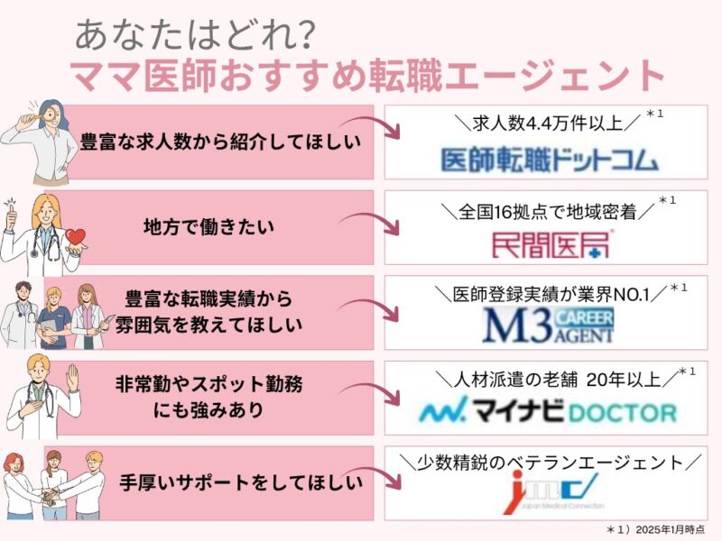 ママ医師におすすめの医師転職エージェント5選【2025年最新版】