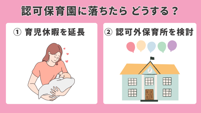 認可保育園の入園選考に落ちてしまったとき、まず取り得る選択肢は大きく2つあります。