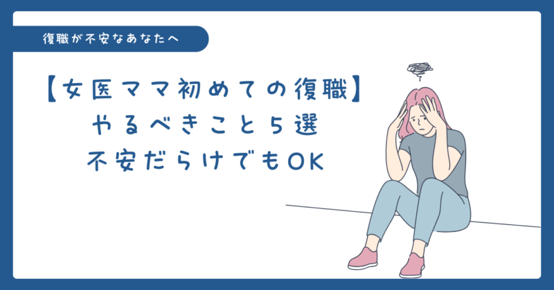 産休・育休、あるいはしばらくのブランクを経て 「そろそろ復職しようかな」と思ったとき。 本当に復職できるのだろうか。 復職を控えた、ほとんどの女医ママが強い不安を感じます。 私自身もとても不安でした。 この記事では、女医が復職前に「これだけは... -
