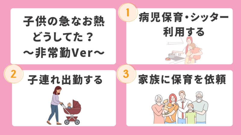 また、雇用形態を変えたり、思い切って転職することで、急な発熱時の対応がぐっと楽になるケースもあります。