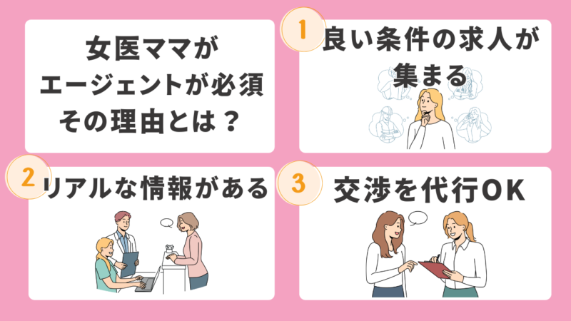 特に育児中の女医ママにとって、エージェントの交渉力転職成功の決め手になることが多いです。