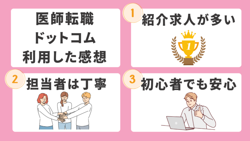 今回は、私が実際に医師転職ドットコムを使って転職活動をした経験から、良かった点・気になった点を本音でレビューしてみたいと思います。